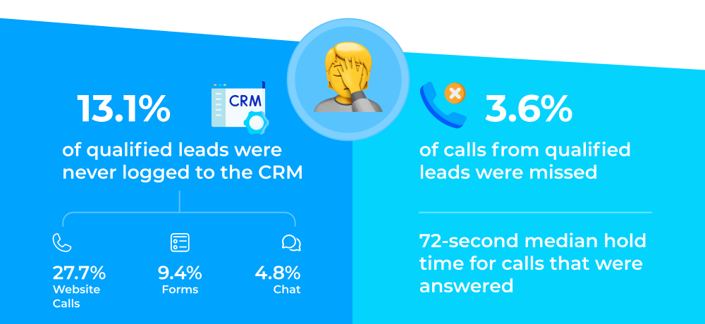 Dealers don’t want to leave prospects hanging out to dry, but it still happens. Overall, 43% of qualified leads were mishandled – that means in-market shoppers weren’t logged to CRMs, had their calls missed, or experienced delayed follow-up. This metric has slightly dipped from last year's report (37%)