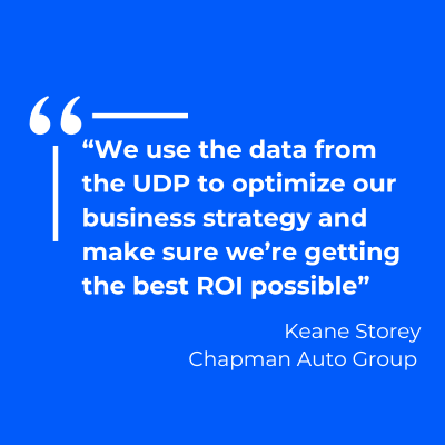 “The UDP allows us to react to changing market environments. We use the data from the UDP to optimize our business strategy and make sure we’re getting the best ROI possible,” said Keane Storey, Director of Business Development at Chapman Auto Group. “It’s made my job a lot easier.”