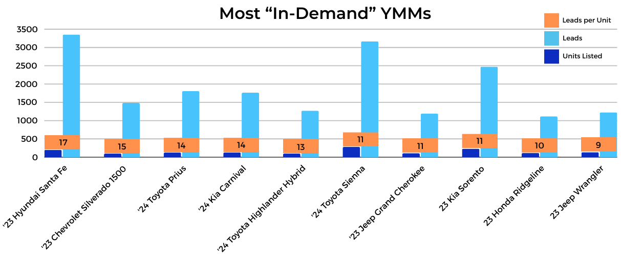 So, we dove into a pool of approximately 700 dealerships to scope out the most sought-after 2023 and 2024 YMMs and their OEMs over the past 3 months (min. 100 units per YMM)